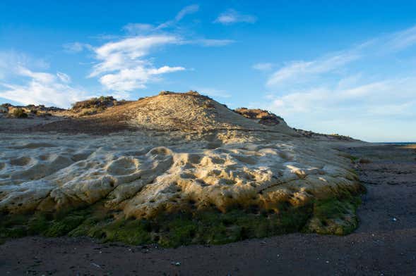 After a half-hour drive, we'll arrive at our destination: Cerro Avanzado Hill. Under the warm dusk light, we'll explore this rocky outcrop on the Patagonian coast, using our binoculars and torch, which is over 91 meters (300 feet) high!