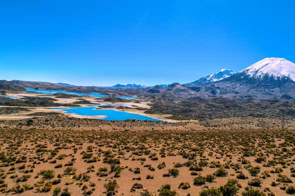As you walk around the Cotacotani Lagoons, you'll see the Parinacota and Pomerape volcanoes. These peaks, whose altitude exceeds 19,685 feet (6,000 metres), create a striking landscape in the Lauca National Park. You'll also love the protected area around Cotacotani, where we'll make a stop to admire the scenery.