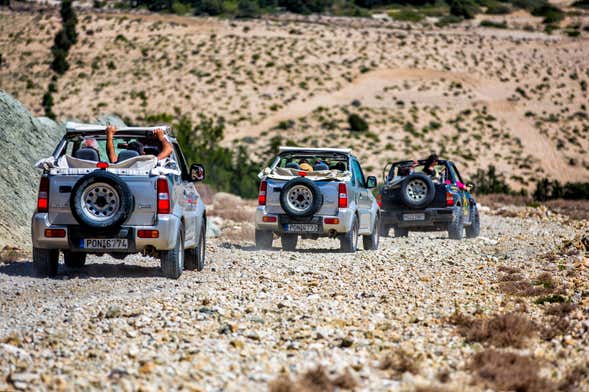 At 8:50 am, we'll pick you up from your hotel. We'll then get on board an off-road 4x4 jeep ready for an adrenaline-inducing adventure exploring the beautiful natural landscapes of the island of Rhodes.