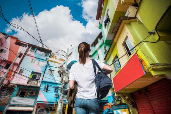 Then we begin walking through the streets as you hear all about the history of these colorful houses that are home to about 8,000 of the city's residents. Any negative stereotypes that you have of these neighborhoods will disappear as soon as you see some of the many educational projects that have been set up here. We will visit the Dona Marta arts center, and the favela's sports center, and see various street art murals and colorful traditional houses.