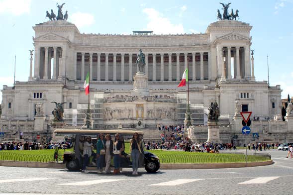 We'll meet at Via Marco Aurelio at the designated time to kick off our eco-friendly tuk-tuk tour of Rome. After a brief introduction, we'll start touring the Italian capital in a spacious electric car designed to accommodate up to 7 passengers. This zero-emission ecological vehicle will allow us to comfortably tour the “Eternal City” while leaving a smaller carbon footprint.
