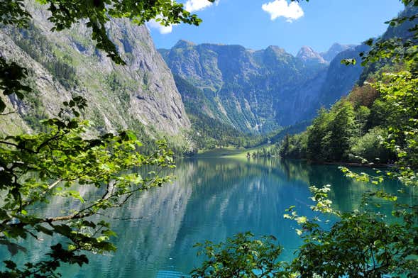 Once we're deep into German territory, after a 50-minute journey, we'll make our first stop at the Berchtesgaden National Park, which is a natural treasure of Bavaria. We'll stop on the banks of the Königssee lake, the “king's lake," so that you can take in the majestic beauty of this setting. Among the immense, rugged peaks of the Bavarian Alps reflected in the water, some red domes will catch your attention. These form part of St. Bartholomew's Church, which is located on the shore of the lake.