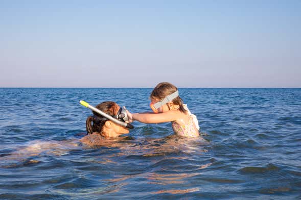 At the scheduled time, we'll see you at the beach in Cala Higuera. We'll grab our equipment for the activity and spend some time learning the basics of snorkelling while we're still on the sand. You'll learn how to use the flippers, goggles and snorkelling tube so you won't have any problems when we're in the sea.