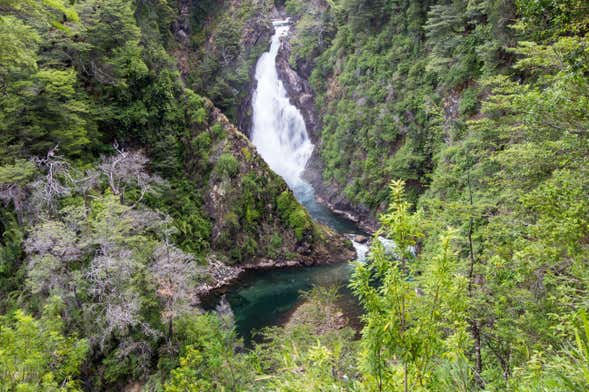Our final destination is Hua Hum, located on the border between Argentina and Chile in the northwest area of Lake Lácar. The Christ of Peace, a statue carved in rauli wood by artisans from Easter Island, is a sight to behold here. After a short hike, we'll arrive at the Chachin waterfall, one of the most breathtaking waterfalls in the area. This 30-meter (100-foot) waterfall in the heart of the Valdivian rainforest is a perfect end to our jam-packed day trip.
