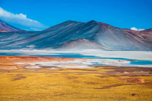 Here we'll also be able to appreciate the emerald waters of the lagoon of the Salar de Aguas Calientes, a beautiful spot that will win you over from the moment you first lay eyes on it. Finally, we'll return to San Pedro de Atacama and drop you off at a central point in the surrounding area. Arrival is scheduled for anywhere between 12-13 hours later.