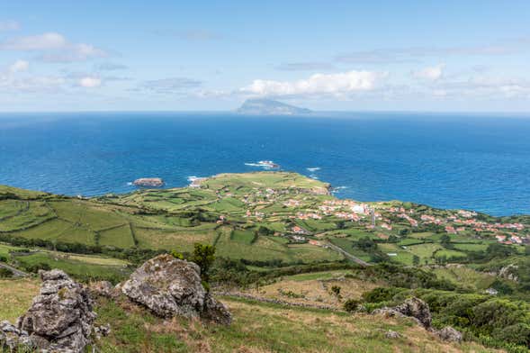 First, we'll stop at a natural balcony overlooking the villages of Alagoa and Cedros. Then, we'll continue on to the town of Ponta Ruiva, where we'll climb to another viewpoint to see the Ilhéu Furado, a volcanic rock in the middle of the Atlantic.