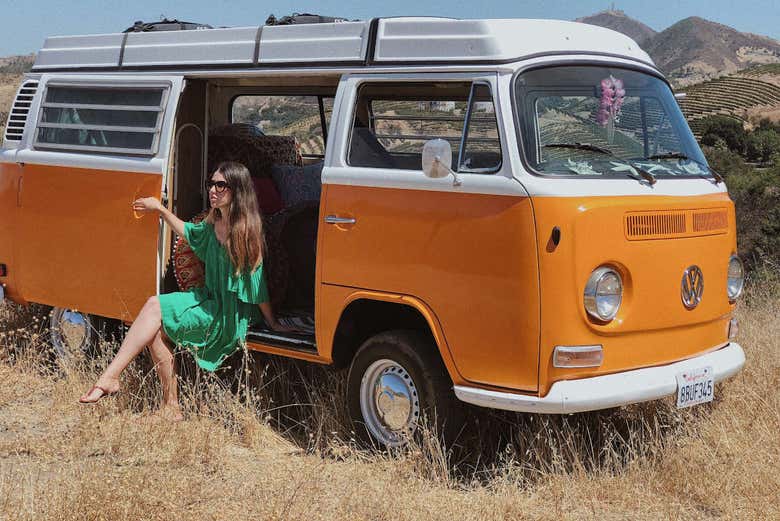 We'll meet up at 11:30 am on Ocean Avenue in Santa Monica, where a very special vehicle will be waiting for us. Remember those typical 1970s Volkswagen Campers? We'll hop into the vintage van and set off on a road trip from Los Angeles to Malibu. California dreamin'!