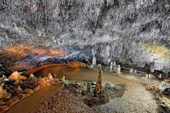 We'll explore its different tunnels on board a small train and admire the incredible range of stalactites, stalagmites, columns, calcite crystals and rock formations that have formed over the years.