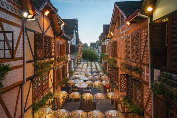 We'll also discover the Vila Inglesa and Alto Capivari neighbourhoods and the Ducha de Prata, translated as Silver Fall, this is a waterfall in the middle of the town, where we'll also find a craft market. As we explore the beautiful town, full of wooden houses and surrounded by breathtaking alpine scenery, you'll be forgiven for thinking you're in Switzerland and not just a short drive from Sao Paulo!
