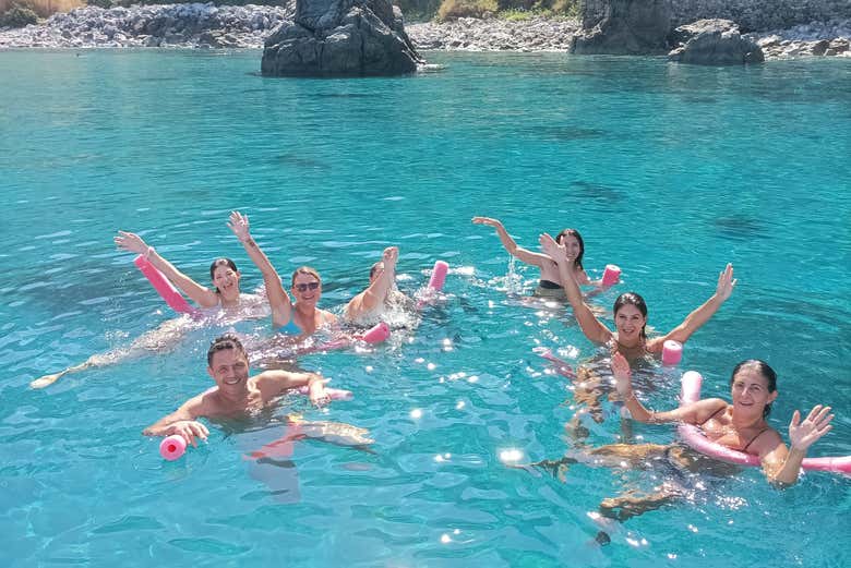 We'll meet at the indicated time at the Marina of Porticciolo di Bagnara Calabra, just 10 km (6.2 mi) from Scilla. There, we'll board a boat with music on board and karaoke, perfect to liven up our trip along the Costa Viola, one of the wildest and least explored areas of Calabria. Let's set sail!