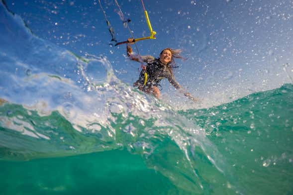The first part of your kitesurfing course will take place on the sand. You'll have a brief theory class before beginning to practice with the kites. Starting off with small kites, you'll soon learn how to control them easily. Your guides will show you how to take off, land and use the safety systems so all you need to worry about when you take to the sea is enjoying yourself!