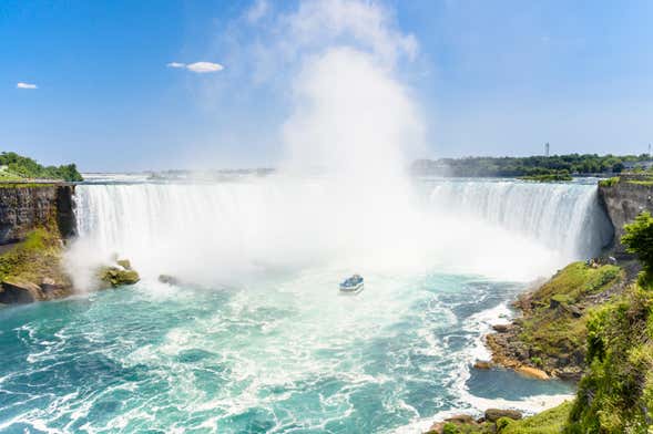 After a journey of around an hour and a half which takes alongside Lake Ontario, we will arrive at Niagara Falls. Once there, we will board a boat which will take us to the closest possible point to the famous cascades which reach drops of almost 200 feet (not included).