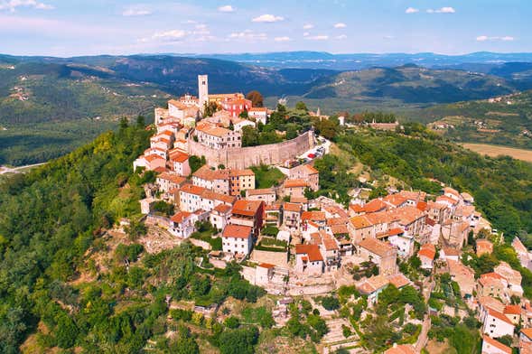 Our first stop will be Hum, a place famous for its Biska, but not only that... Did you know that with only 20 inhabitants, Hum is considered the smallest village in the world? We'll drive through this charming town to taste local products and contemplate the beautiful mountainous landscape of the area before heading to Motovun, the next stop on our tour.