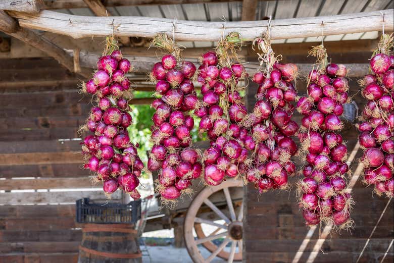 To start, we'll take a look at the colorful and picturesque stands that fill the streets in the historic center of Tropea. Here, you can taste the first delicacies, like the famous red onion and some cheeses.