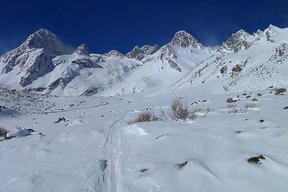 Time to recharge your batteries! We'll reach the Meicin refuge to enjoy a breathtaking view while we take advantage of the stop to fuel up with lunch and a hot drink. From there, we'll start the descent to Tuiza between large snow-covered meadows.