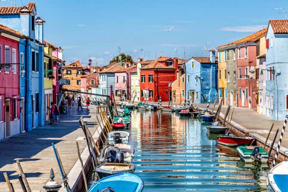 Continuing on our boat tour, we'll head to the fascinating island of Burano. Here you'll have approximately an hour and a half of free time to explore its patchwork of colored houses and its great cultural and artistic heritage. This island is known especially for its crochet work and lace, or merletti, as it's called here. You'll be able to visit one of the famous museums, such as the lace museum, and the many shops that sell this beautiful craft.