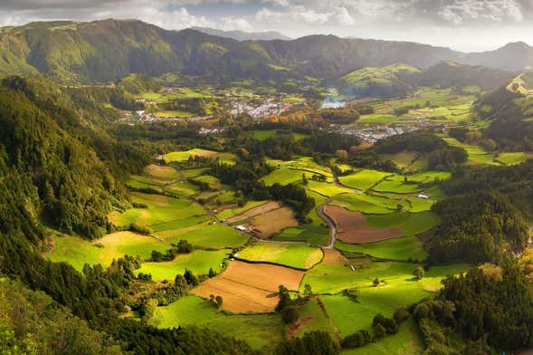 First, we'll drive through the Furnas Valley to see the fumaroles and geysers of boiling water that create an atmospheric mist over the volcanic landscapes. Reaching a high point, we'll get to see the crater lake of Furnas and the fumes rising from the water - the lake is located right above the volcano!