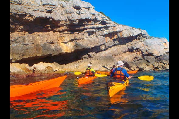 For around 2 hours, we'll paddle along Vilanova i la Geltrú's coast while admiring beautiful views from our kayaks. We'll see cliffs and sea caves surrounded by enchanting turquoise waves.